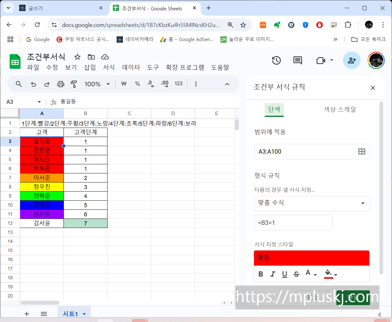 구글스프레드시트 조건부서식 적용방법